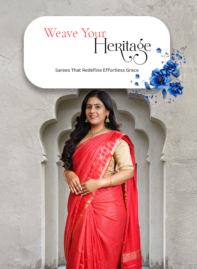 Russian Silk Saree with Digital Prints & Zari Weaved Butas This exquisite Russian Silk Saree features a graceful fusion of zari-woven butas and digital floral prints. Its luxurious texture and subtle sheen make it a perfect pick for temple visits, traditional functions, or elegant...