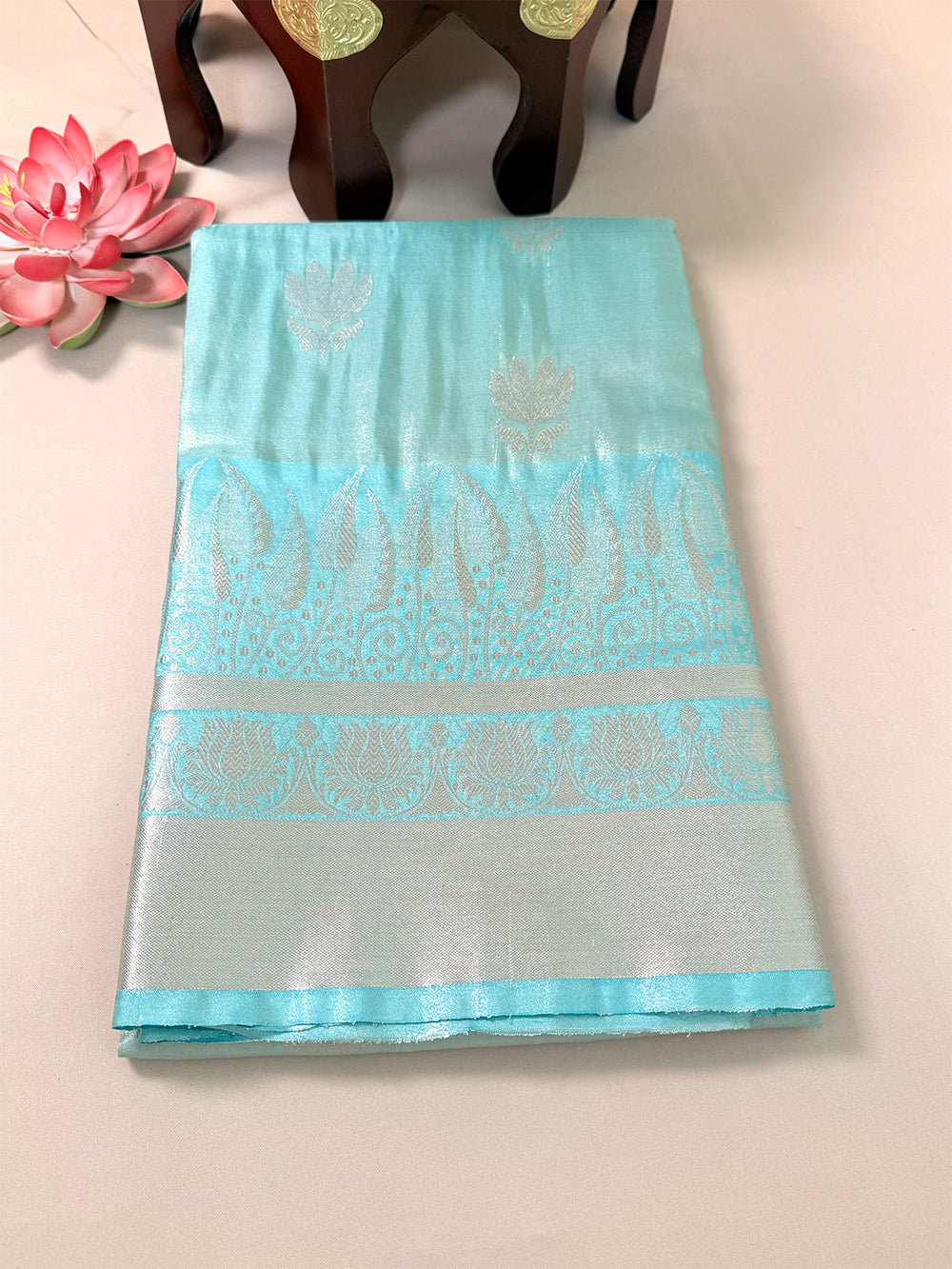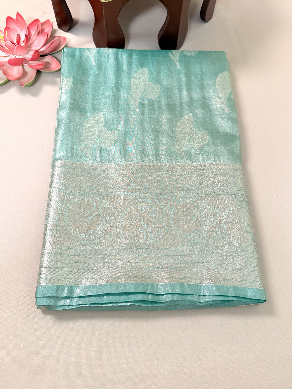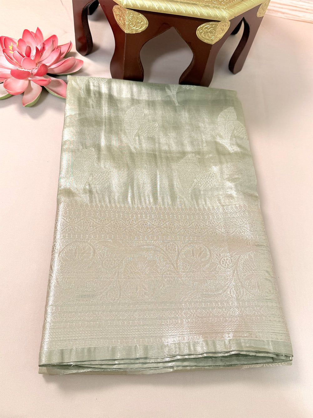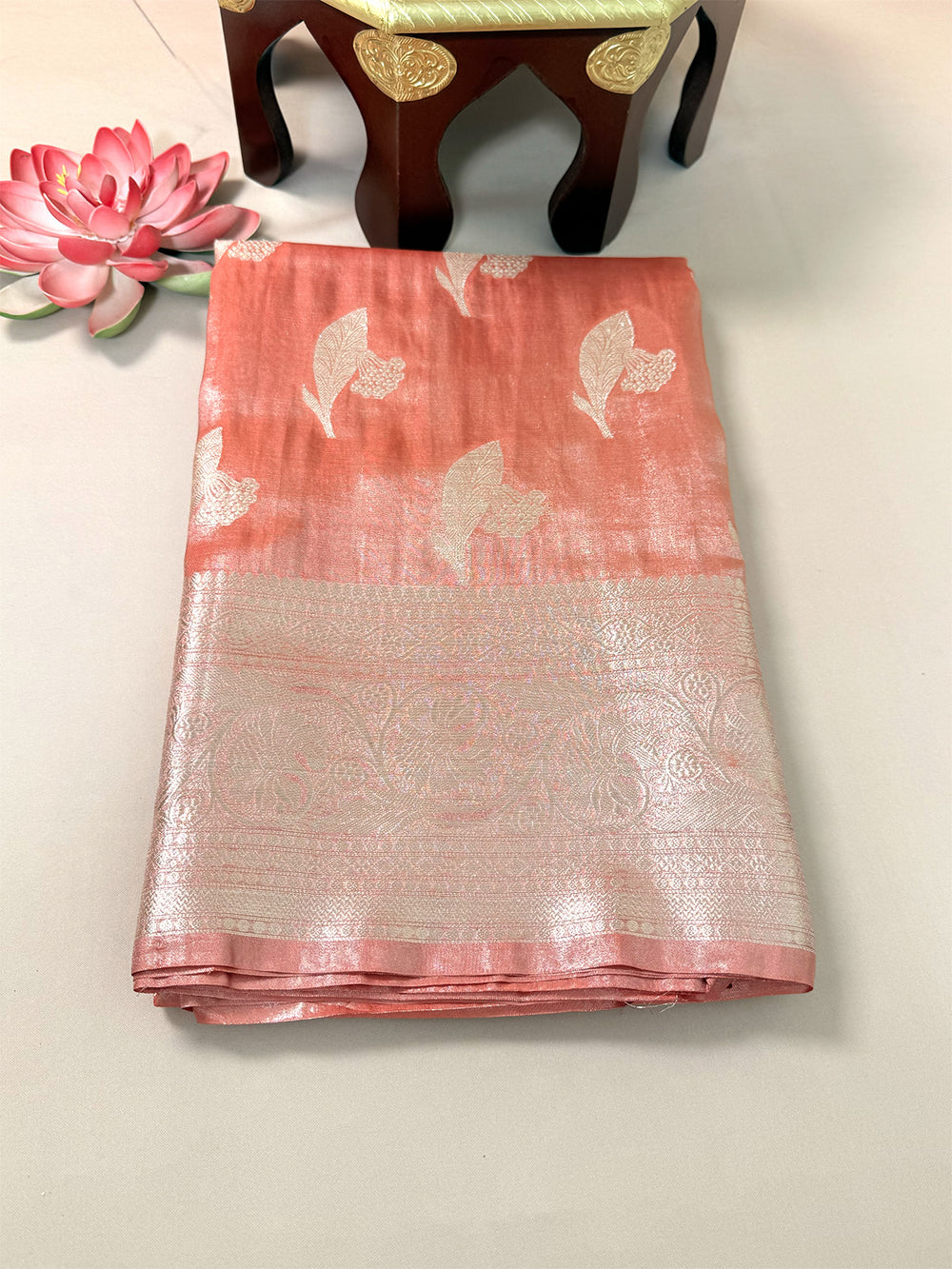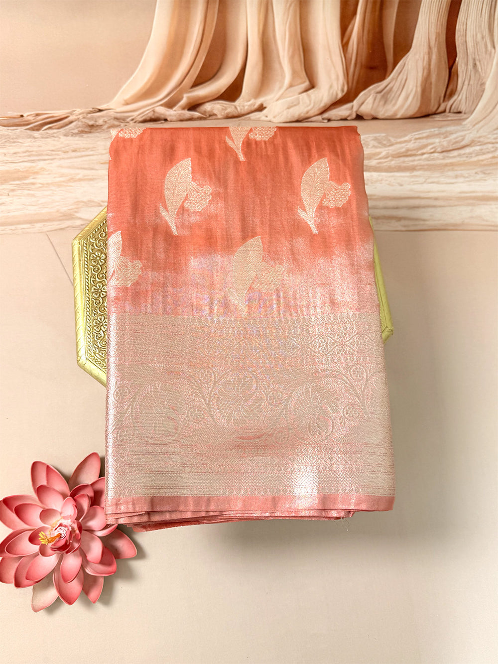 Crafted from the finest Banaras Tanchui, this saree features rich and intricate self-weaving with a unique designer concept. Known for its luxurious texture, this Tanchui saree is paired with a running blouse, making it a timeless addition to your ethnic collection.