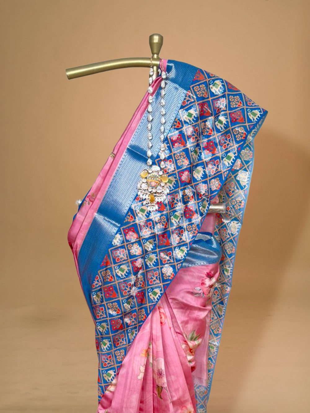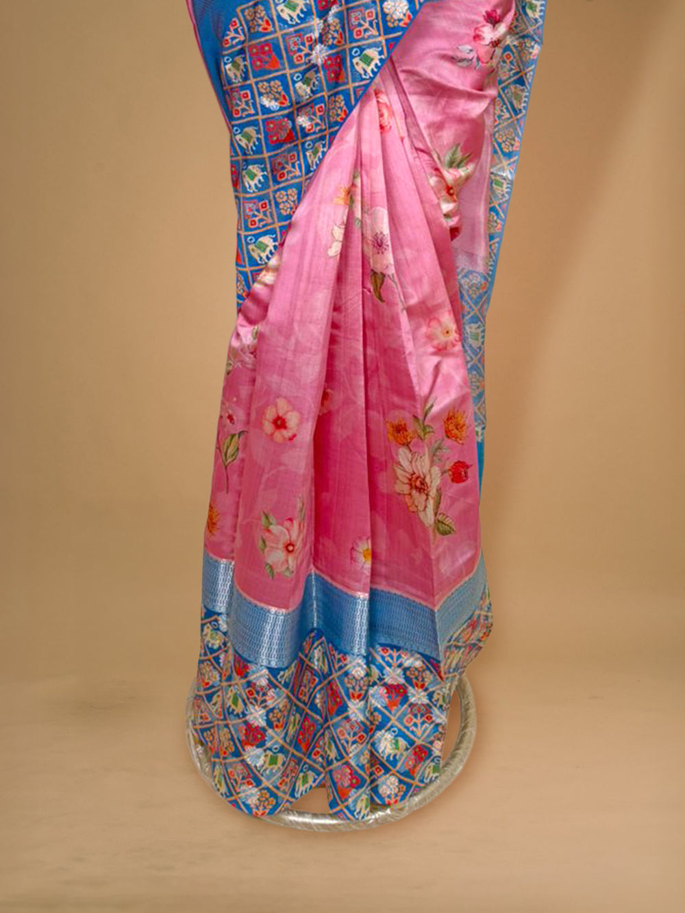 Elegant Charm – Pink Mona Silk Saree with Patola Weaving & Digital Print