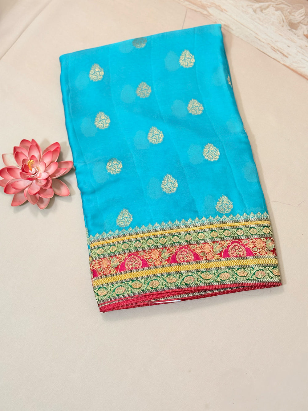 ▪ Fabric: Pure Kora Silk with Golden Zari Weaving