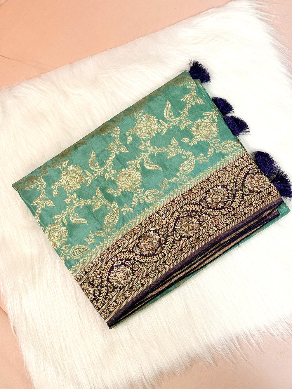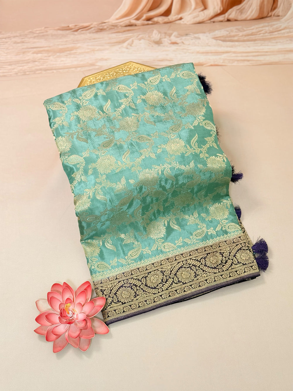 Semi Katan Silk Saree with Jaal Weaving and Contrast Border