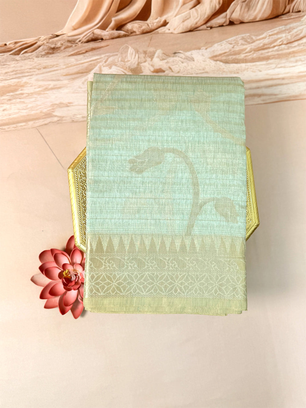 Pure Banarasi Linen Tussar Saree with Antique Zari Weaving