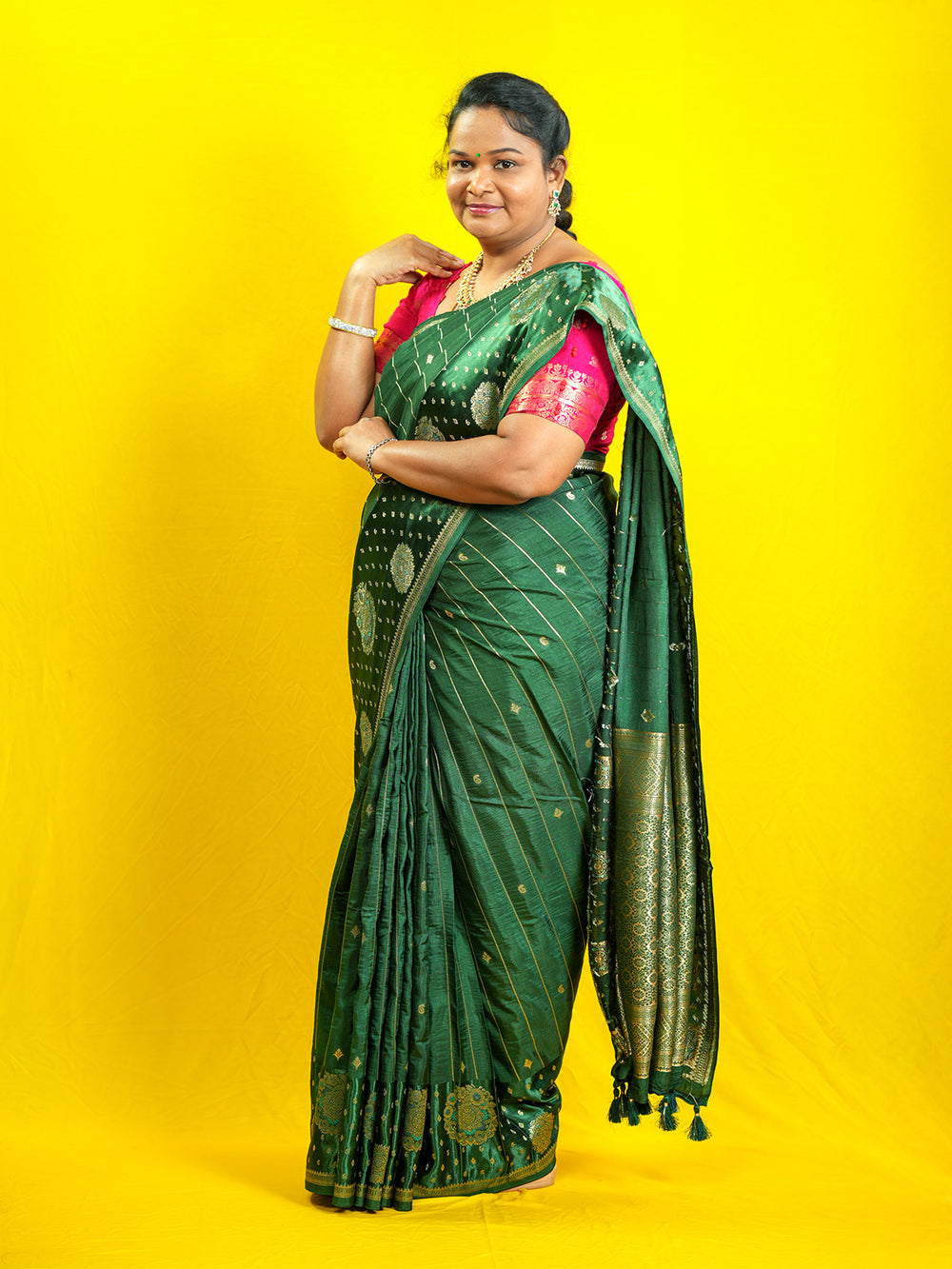 ▪ Style Tip: Pair with a maggam work blouse for an elegant traditional look.