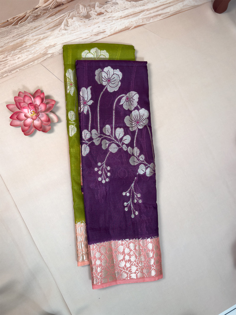 Due to digital photography, slight color differences (5% to 10%) may occur. This handcrafted saree may include minor variations, making each piece uniquely beautiful.