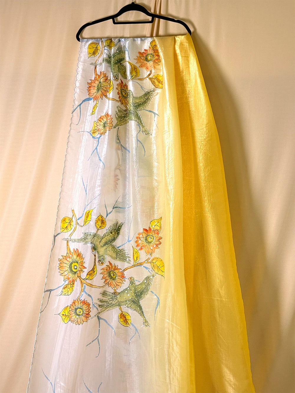 Tissue Silk Saree with Handpainted Flower & Parrot Design